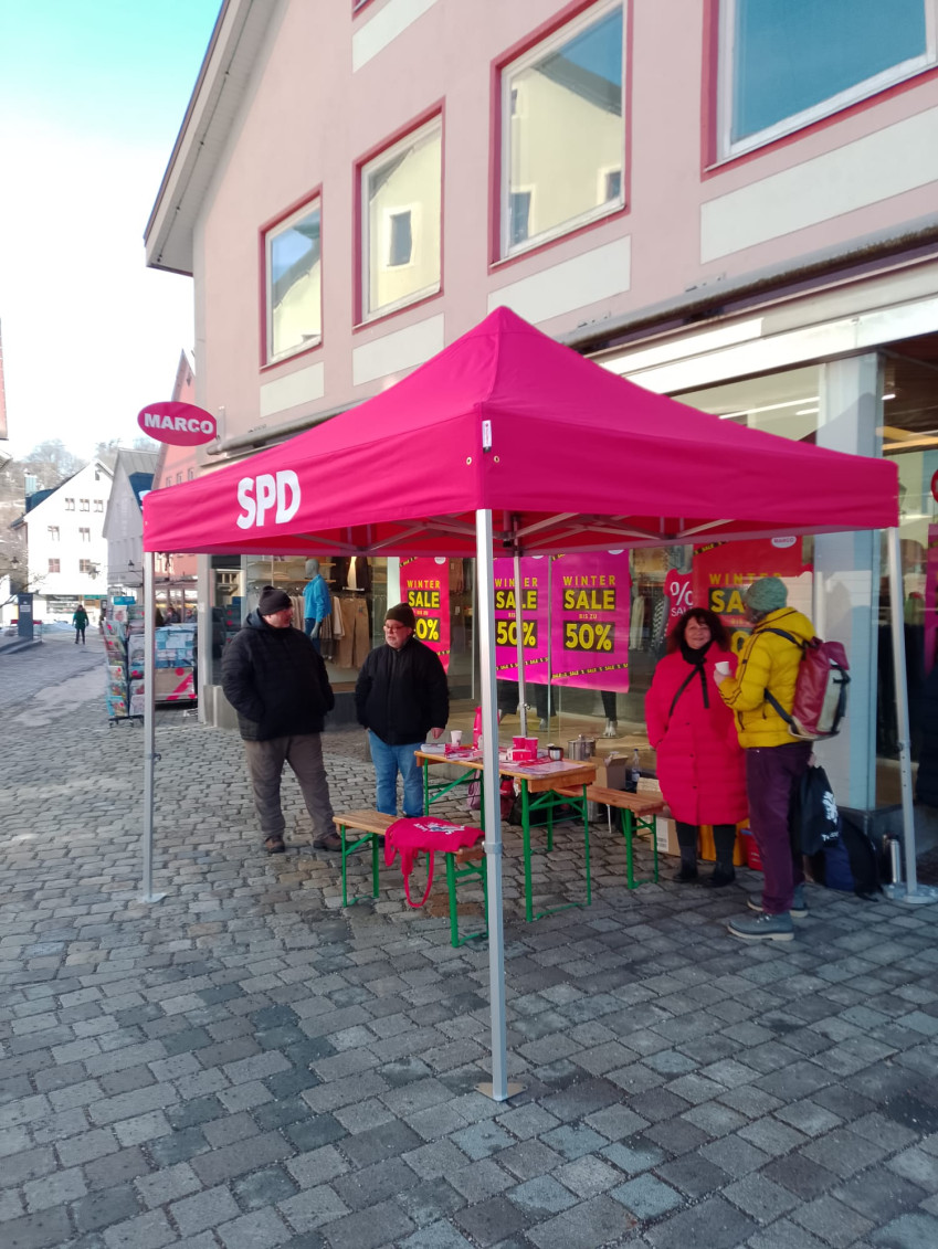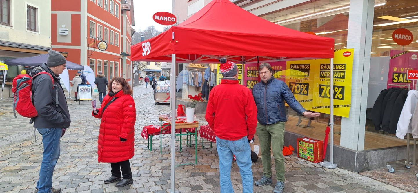 Gestern war der erste Stand und wir hatten einen guten Austausch und es gab viele Fragen, oft zur Bundespolitik der SPD, denen wir uns gestellt haben.